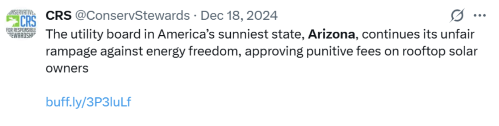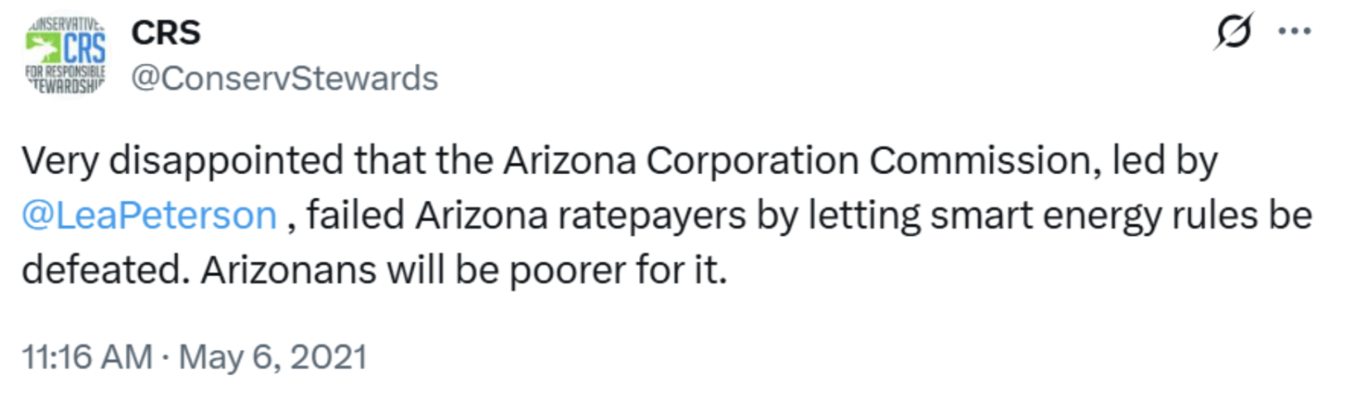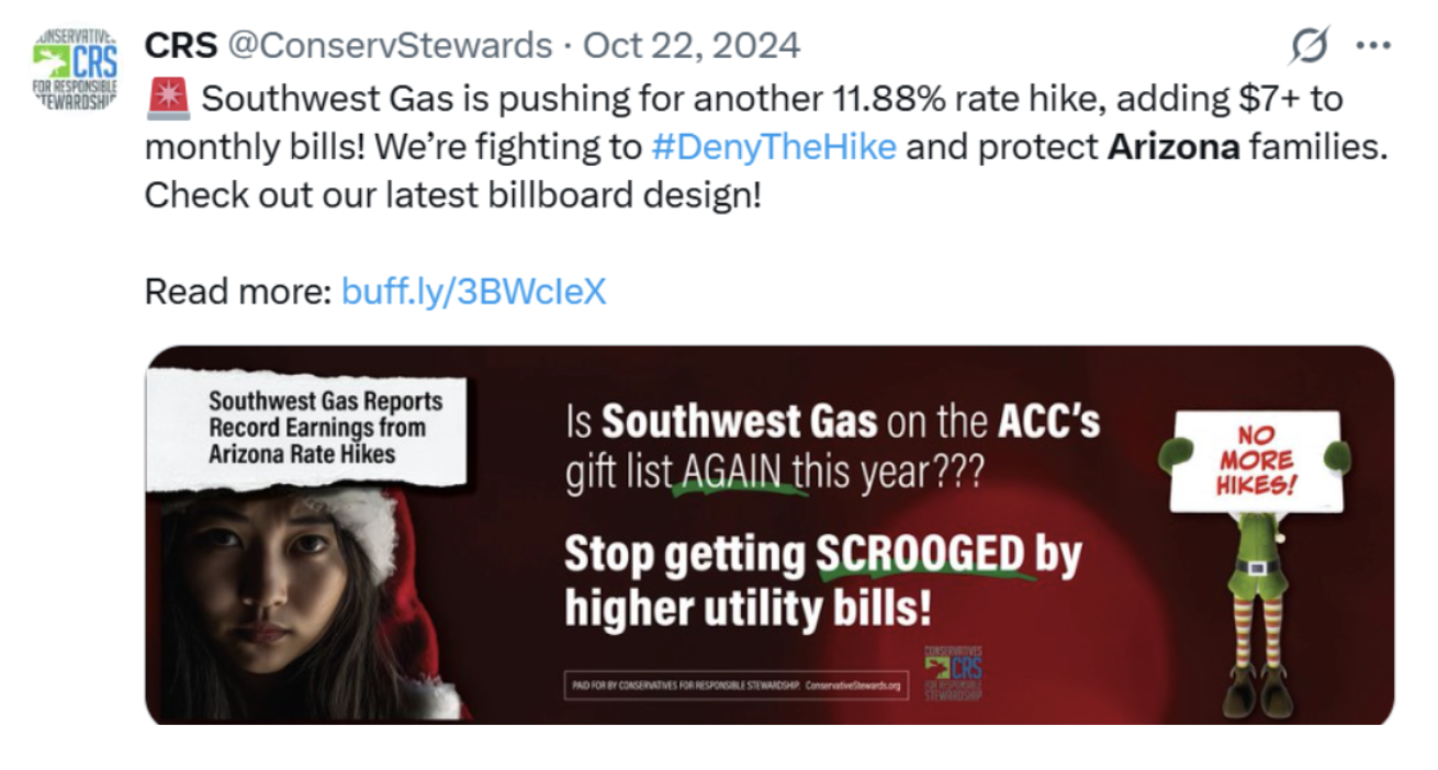 Despite its name, Conservatives for Responsible Stewardship has advocated along side environmental NGOs in Arizona to restrict natural gas use in buildings, promote renewable energy subsidies and mandates and attack Republican Corporation Commissioners. While claiming to uphold conservative values, their advocacy frequently aligns more with radical environmentalism than with practical, market-based solutions. In doing so, they undermine economic growth and alienate the very constituency they claim to represent.