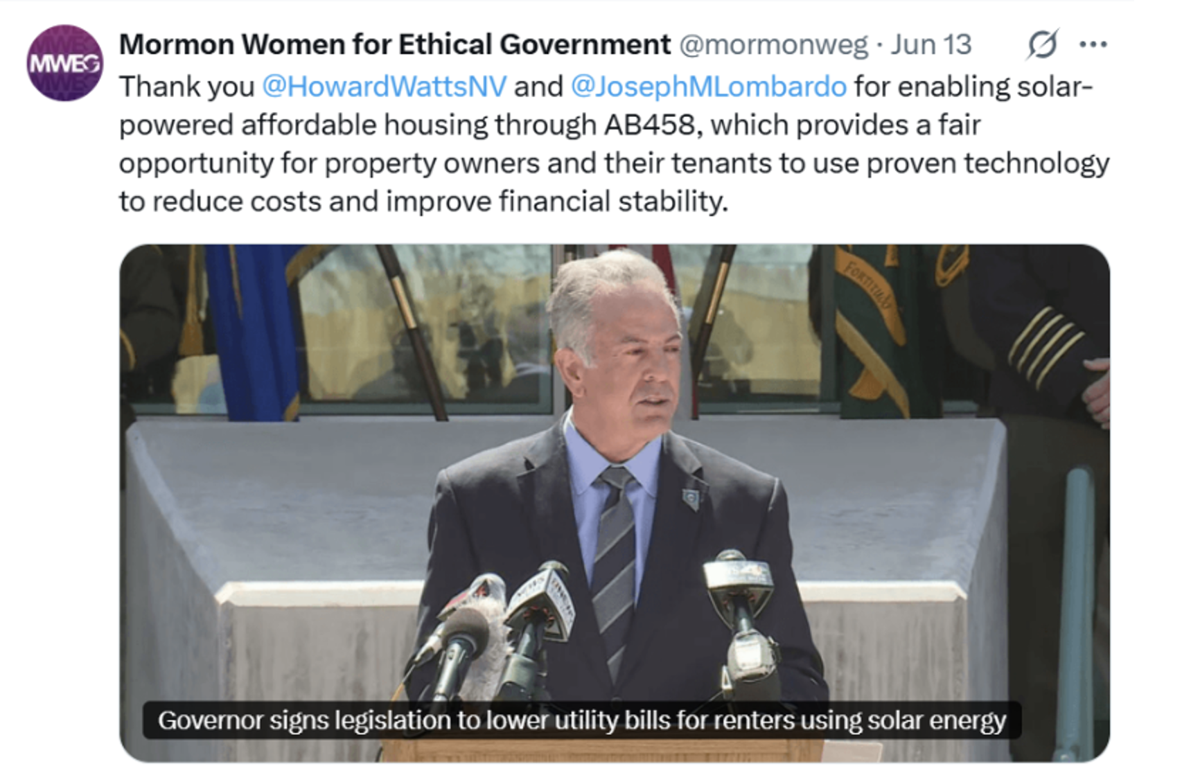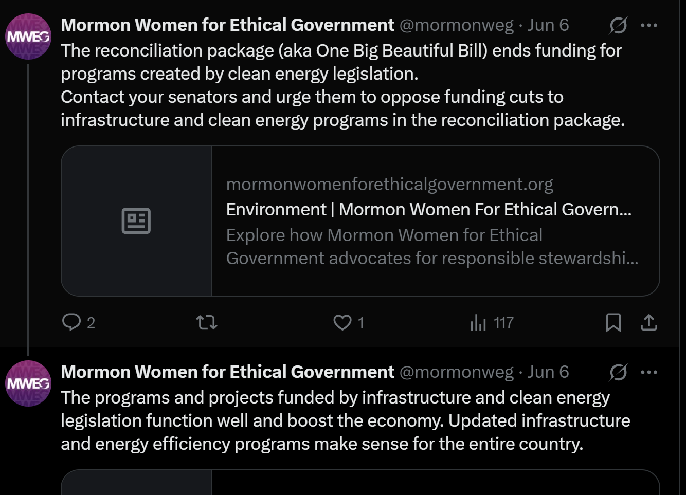 A significant portion of the MWEG website and its X account are focused on Green New Deal issues.