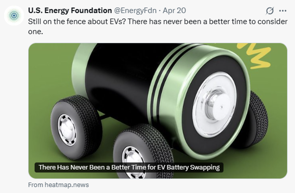 The US Energy Foundation has an active social media presence on X.com where they support renewable energy, energy efficiency, electric vehicles and building electrification. The Energy Action Fund’s 990 states that the organization “provides grants to support the advancement of clean energy and energy efficiency policies. The Energy Foundation China states their mission is “to achieve greenhouse gas emissions neutrality, world class air quality and green growth.”